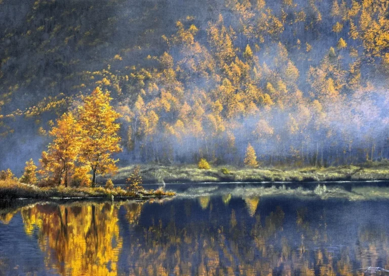 Pertenece a la serie «Otoño». Captura la belleza y el color del otoño en un intenso. Juego de luces y sombras. Carece de detalles innecesarios,