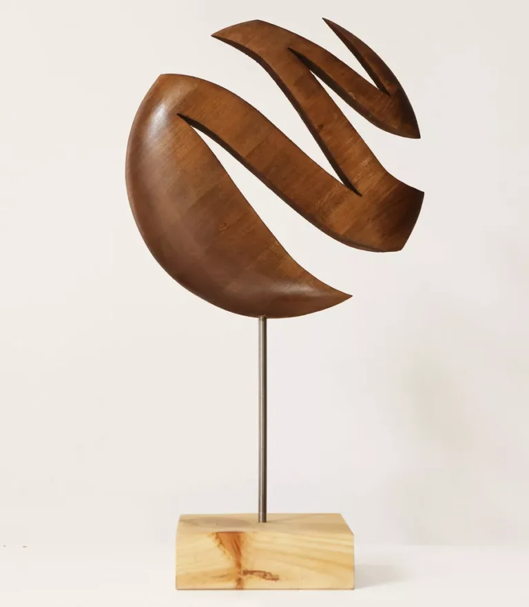 Realizada en madera de tilo —ligera y de brillo natural—, Yuanyang es una pieza que transmite fluidez, equilibrio y armonía. La obra se inspira en
